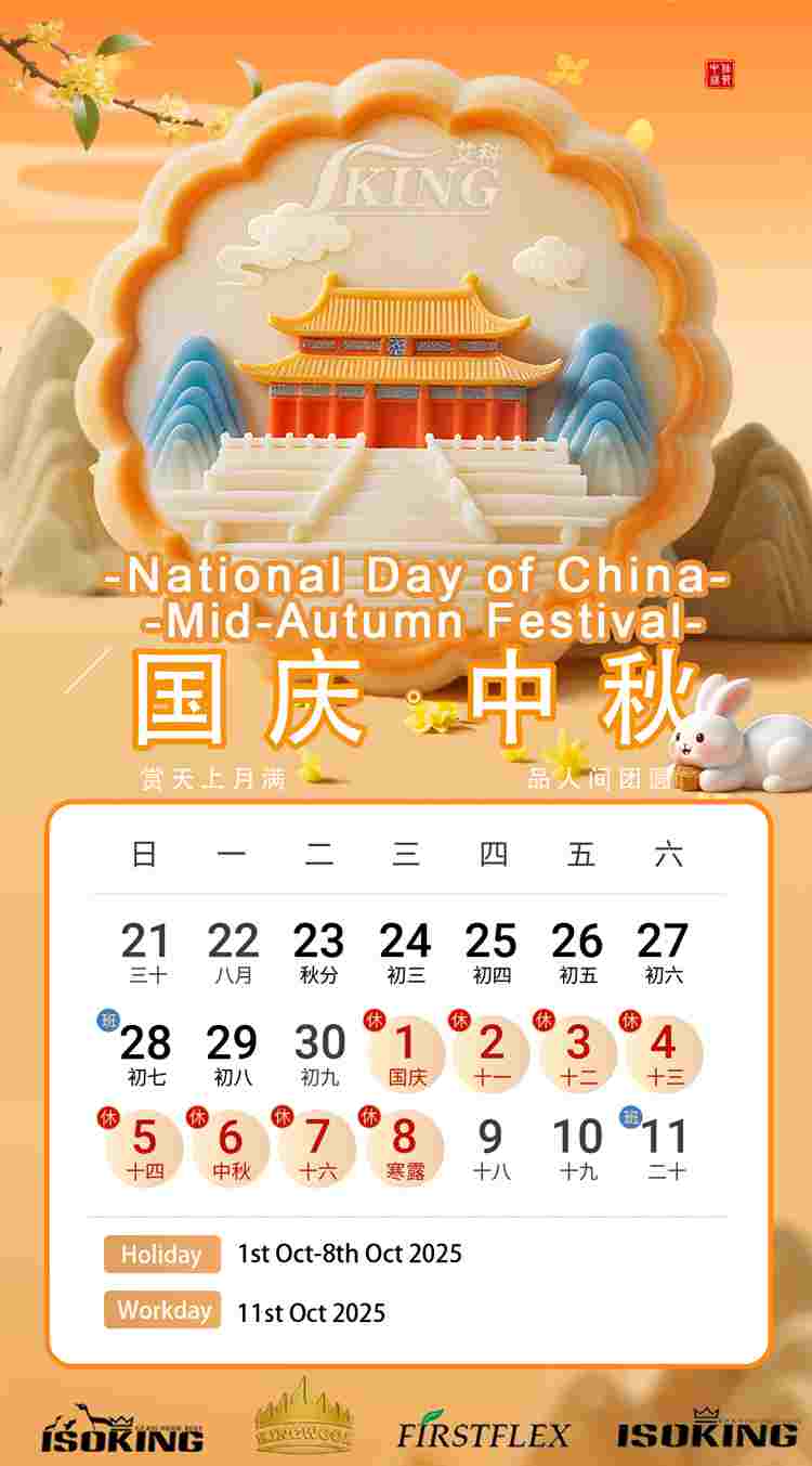 China's National Day and Mid-Autumn Festival are coming soon. According to the arrangement of national legal holidays and in combination with the actual situation of our company, the arrangement of IKING GROUP's National Day and Mid Autumn Festival holidays in 2025 is announced as follows: